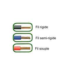 - Semi-rigide : 0,08 … 2,5 mm² / 28 … 12 AWG