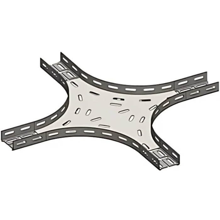 Elément de raccordement pour chemin de câbles dalle à bords roulés.